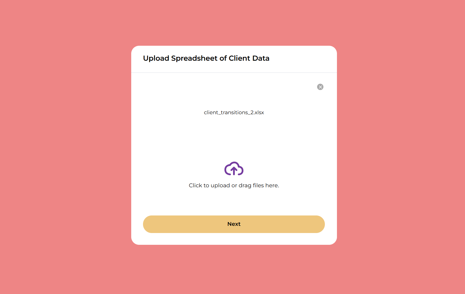 The workflow begins with an Excel file upload (or other supported document type) containing multiple client records. Feathery extracts the information from this file and maps it into a structured form. This ensures that client data is centralized, organized, and ready for review.