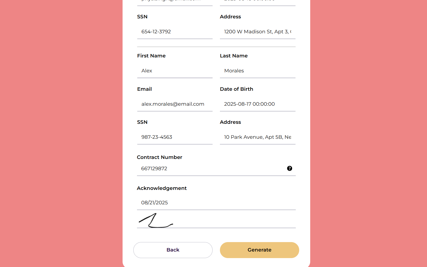 Once the data is mapped, advisors can review and update each client’s information directly within the form. This allows teams to correct, supplement, or adjust details before moving forward in the transition process.